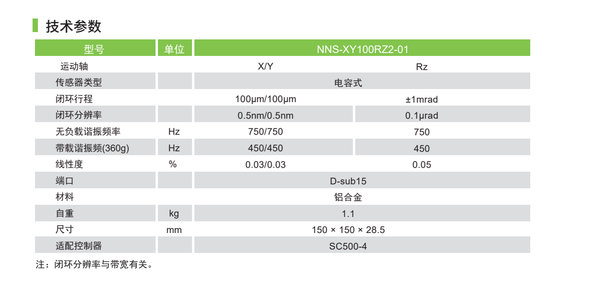 NNS-XY100RZ2-01是一款集成平移和旋轉(zhuǎn)的高精度納米運(yùn)動(dòng)臺(tái)。電容傳感器全閉環(huán)控制,精度高,結(jié)構(gòu)緊湊。大通孔設(shè)計(jì),陽極氧化黑工藝,滿足多場景應(yīng)用。