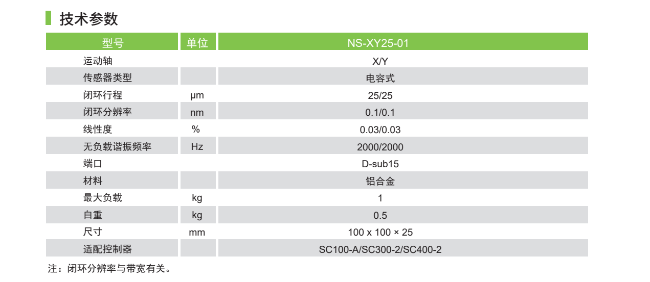 NS-XY25-01是一款高精度二維納米定位平臺(tái),提供集成的XY兩維運(yùn)動(dòng)控制。閉環(huán)行程可達(dá)25x25μm,閉環(huán)分辨率 0.1/0.1nm。